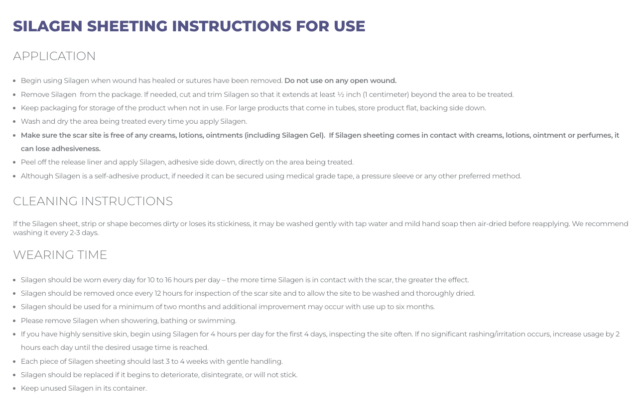 NOTE: The Silagen brand product line is exclusive to authorized physician retailers and cannot be resold. Resale of any Silagen product will void any warranty and support by the manufacturer. Purchaser agrees that Silagen products without manufacturer warranty and support are considered materially different from new Silagen brand products. Silagen products are non-returnable and non-refundable.